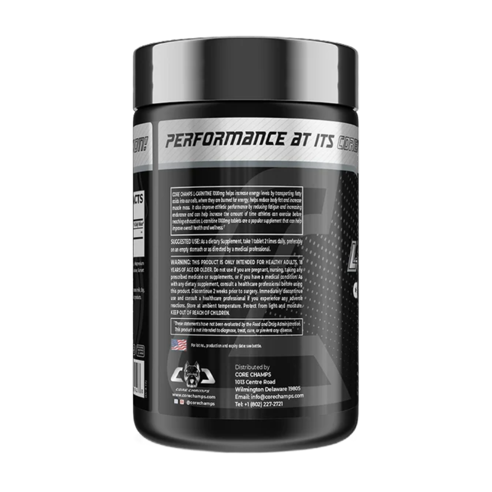 Elevate your performance with Core Champs L-Carnitine 1000mg, the ultimate supplement for energy and weight management. This powerful formula helps your body convert fatty acids into usable energy, boosting endurance and supporting fat loss. It’s the perfect addition to your regimen for achieving a leaner physique and enhancing athletic performance.