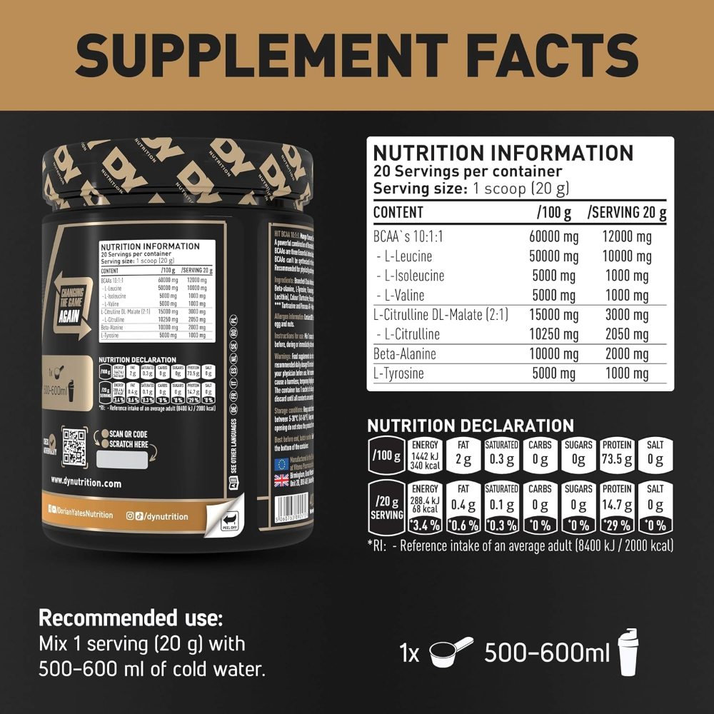 Dy Nutrition, HIT BCAA 10:1:1, 400g, 20 Servings
