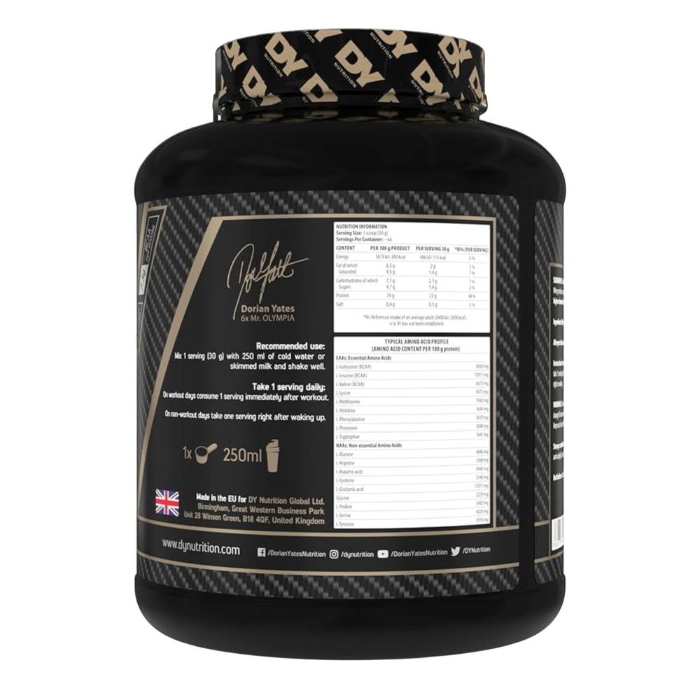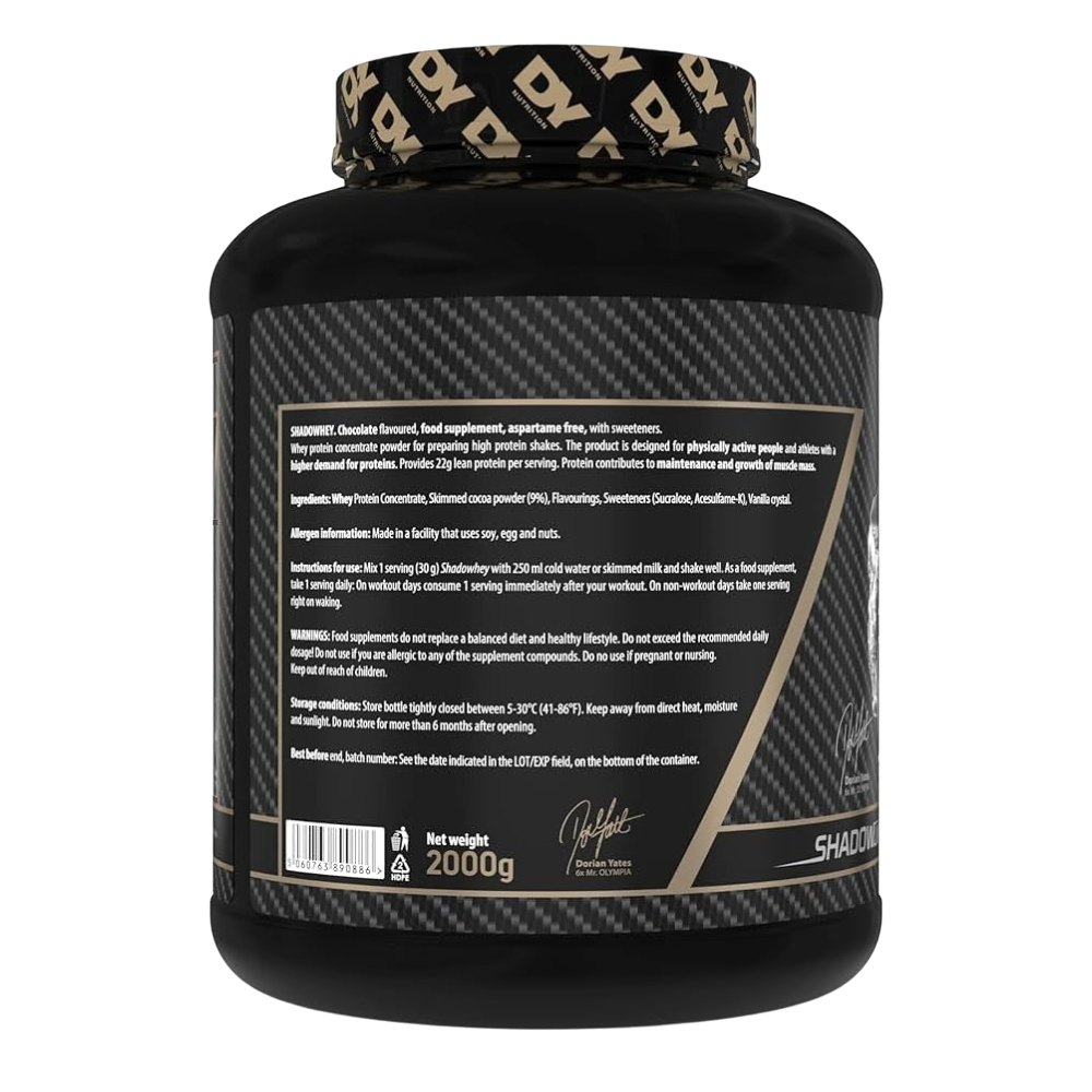 Fuel your muscles with the legendary quality of DY Nutrition’s Shadowhey, a 100% whey protein concentrate from 6x Mr. Olympia, Dorian Yates. This premium protein is designed for physically active individuals and athletes looking to enhance muscle growth and accelerate recovery. Each serving is packed with 23g of high-quality protein and over 7.3g of BCAAs, making it the perfect post-workout shake or daily protein boost.