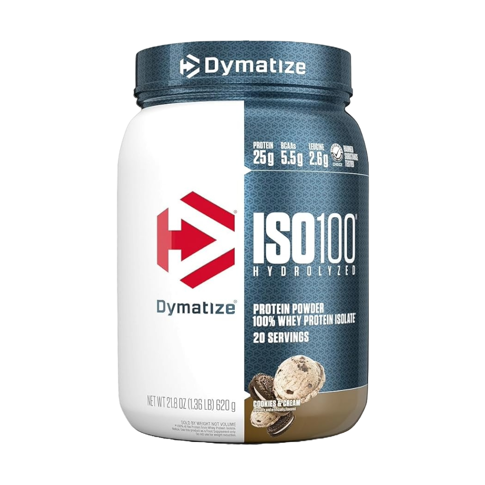 Dymatize ISO100 Hydrolyzed is a super-fast digesting and absorbing whey protein isolate, scientifically formulated to help you crush your fitness goals. Each serving is packed with 25g of high-quality protein from 100% whey protein isolate that has been hydrolyzed for even faster absorption. With less than 1g of sugar and fat per serving, it’s the perfect clean choice for post-workout recovery and muscle growth.
