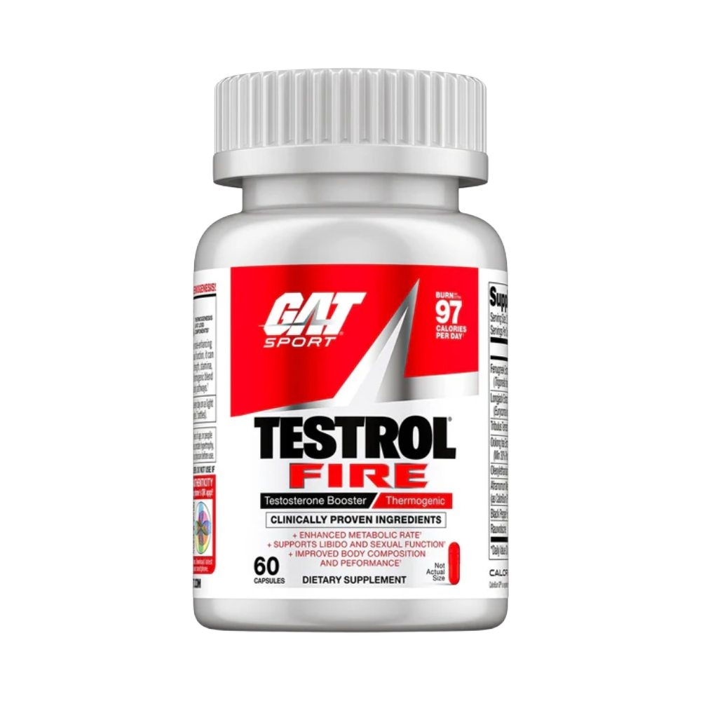 Boost your testosterone levels and enhance thermogenesis with GAT Sport’s Testrol® Fire. This powerful 2-in-1 formula is engineered with clinically proven ingredients to help enhance your metabolic rate, support libido and sexual function, and improve body composition. Featuring potent male virility ingredients like Longjack and Fenugreek, combined with the thermogenic power of CaloriBurn GP™, Testrol® Fire is designed to help you burn an extra 97 calories per day and achieve a leaner, harder physique.