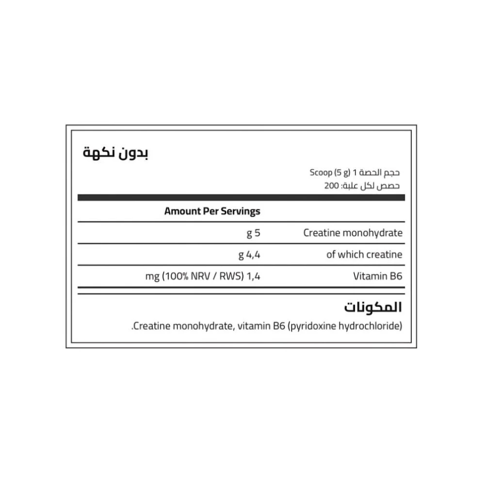 Ingredients: Creatine monohydrate, Vitamin B6 (pyridoxine hydrochloride).