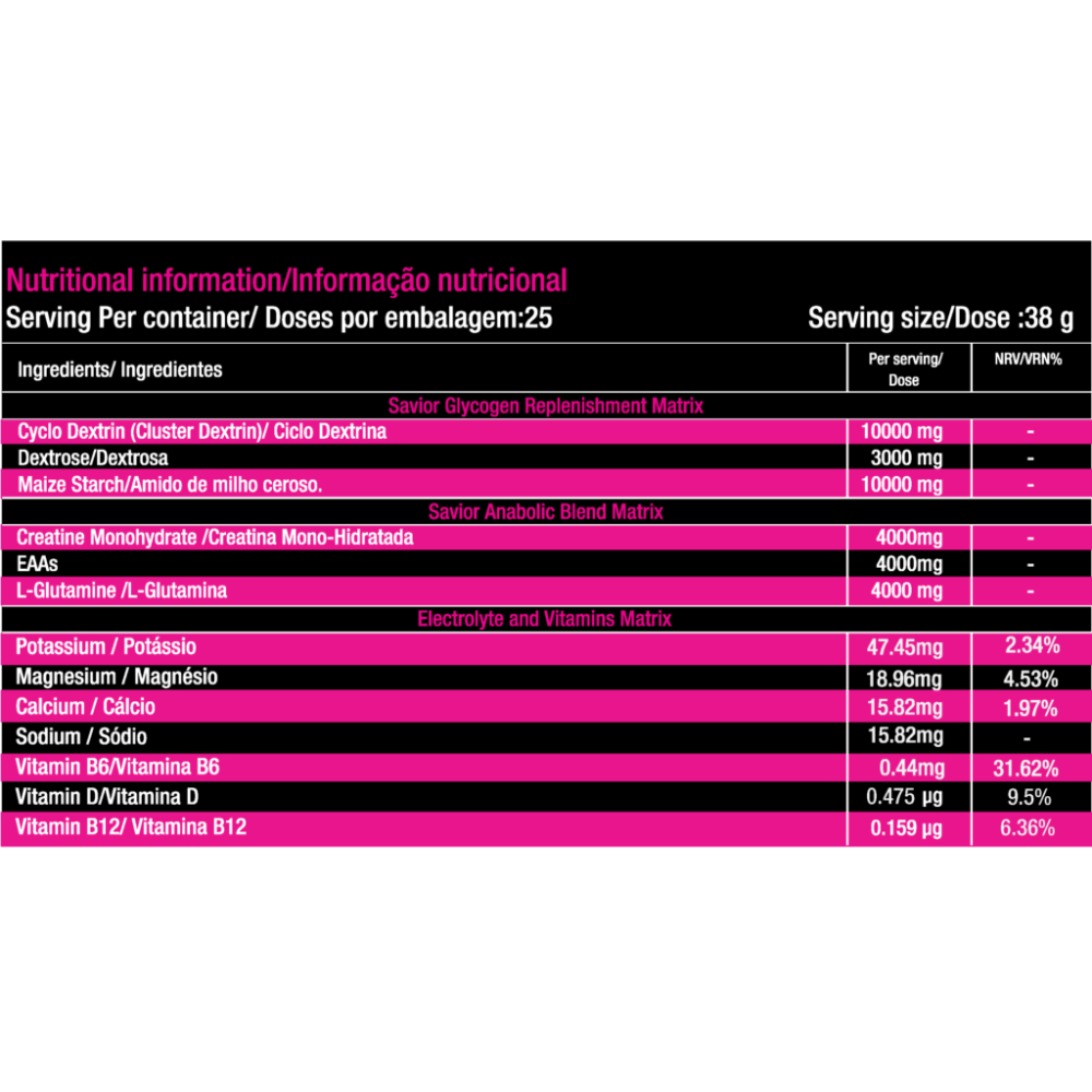 Marvelous Nutrition Savior is your post-workout solution for muscle growth and recovery. This advanced formula combines high-quality carbohydrates like Cluster Dextrin® with a powerful blend of essential amino acids and creatine to replenish glycogen stores, promote an anabolic state, and accelerate recovery. It’s designed to be gentle on your stomach while providing the nutrients your muscles crave after an intense workout.
