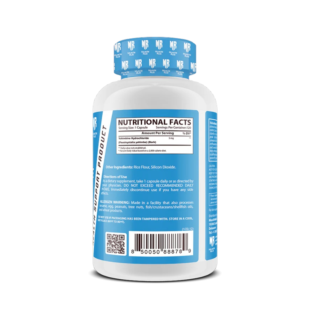 To begin with, elevate your fitness regimen and breakthrough plateaus with Muscle Rulz Yohimbine. Specifically, this innovative supplement delivers 120 capsules of highly concentrated Yohimbe bark extract designed to support serious athletes. Furthermore, providing exactly 5mg of Yohimbine Hydrochloride per serving, it effectively assists in eliminating unwanted fat while boosting overall energy. Indeed, it is the ultimate tool to push your training into overdrive.