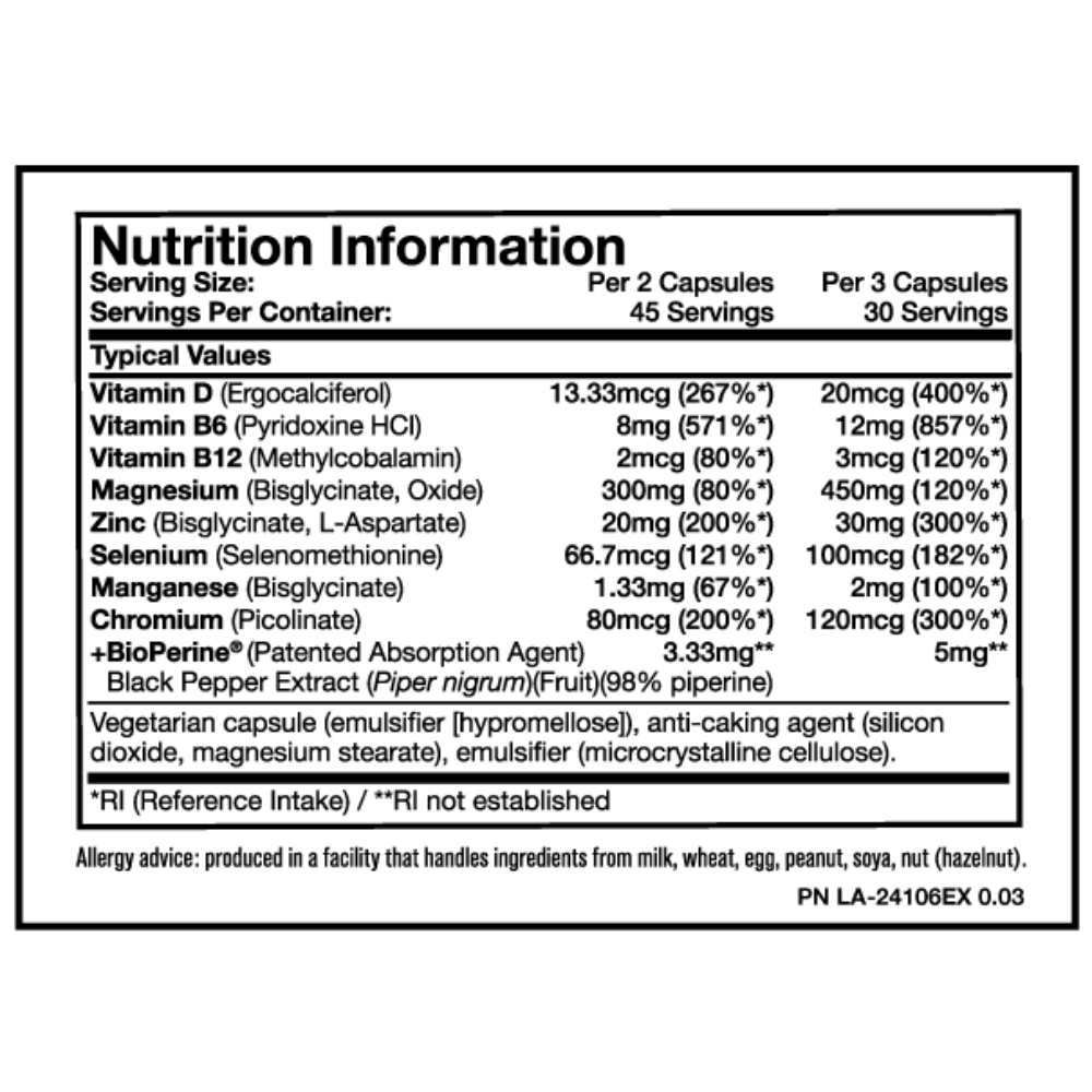 - Enhanced Absorption: Fortified with 5mg of BioPerine®, a patented absorption agent, to maximize nutrient uptake.