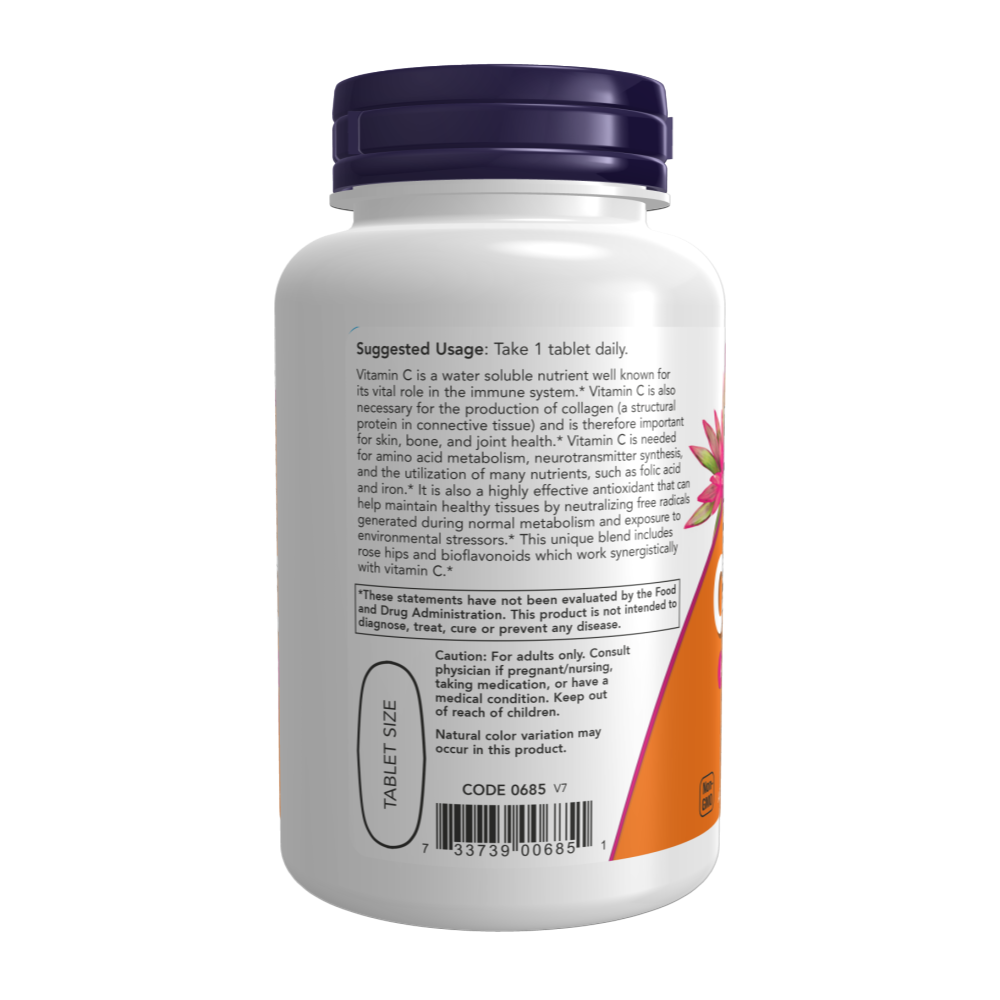 Boost your body’s defenses with NOW C-1000, a high-potency Vitamin C supplement designed for powerful antioxidant protection. Vitamin C is a water-soluble nutrient well known for its vital role in the immune system. It’s also necessary for the production of collagen, making it essential for skin, bone, and joint health. This unique formula is enhanced with Rose Hips and Bioflavonoids, which work synergistically with Vitamin C to maximize its benefits.