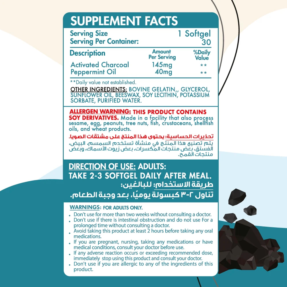 To begin with, Perfect Charcoal Egypt by Organic Nation is your natural solution for digestive relief. Specifically, these rapid-release softgels contain activated charcoal designed to alleviate bloating, gas, and digestive discomfort effectively.