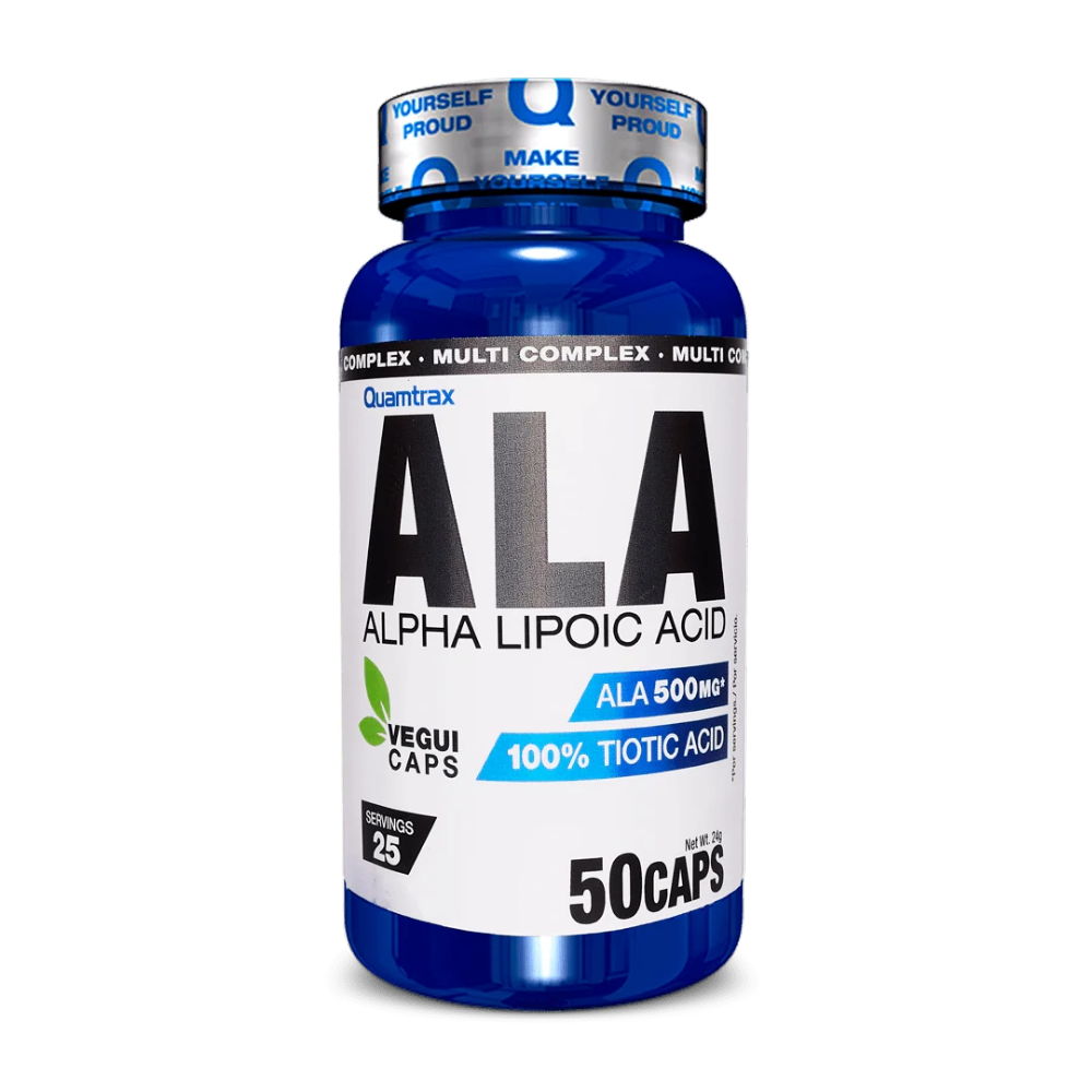 Support your body’s defense system with Quamtrax Nutrition’s ALA (Alpha Lipoic Acid). This powerful antioxidant, also known as Thioctic Acid, is presented in convenient Vegi Caps. Each serving provides 500mg of high-quality Alpha Lipoic Acid, designed to supplement a varied and balanced diet and support a healthy lifestyle.