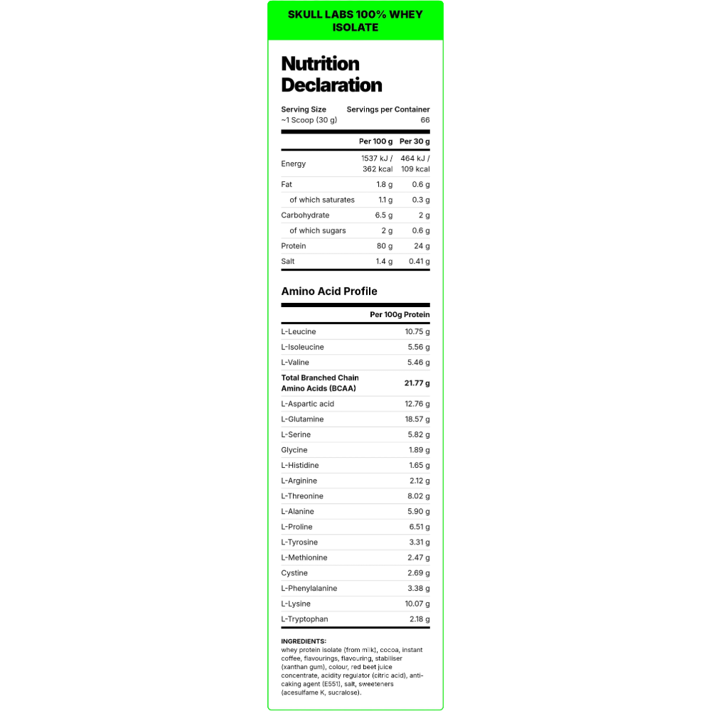 Fuel your gains with SKULL LABS® 100% WHEY ISOLATE, a premium protein product providing the purest whey protein isolate. Produced using a multi-stage cross-flow microfiltration process, this formula delivers the best protein fractions while retaining their biological properties. It’s designed for the serious athlete focused on the growth and maintenance of muscle mass and the support of normal bones.