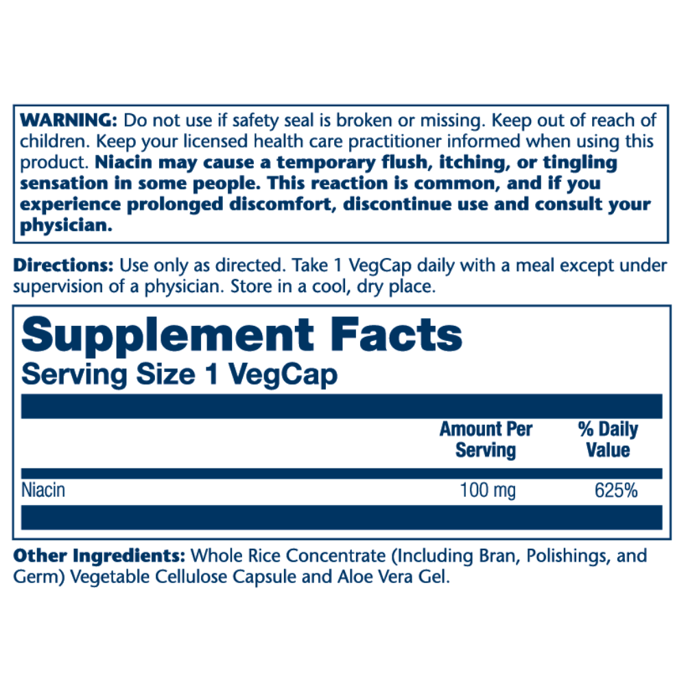 • Potent Dose: Delivers 100 mg of Niacin in a single vegetarian capsule.