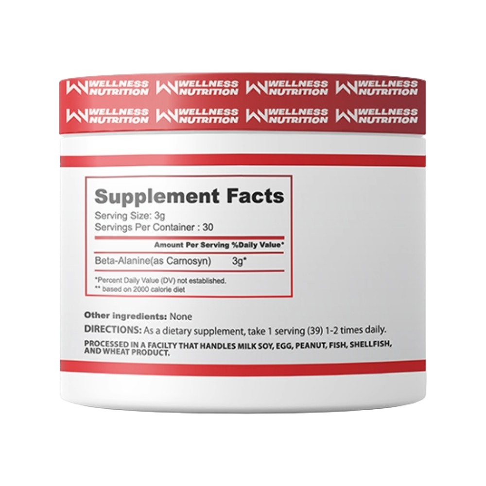 Unleash your ultimate potential with Wellness Nutrition Beta-Alanine. This unflavored powder is designed to be your ultimate booster, helping you increase your ability to perform exercise, enhance endurance, delay muscle fatigue, and increase your overall training volume. It’s a pure and potent formula for athletes looking to push their limits.